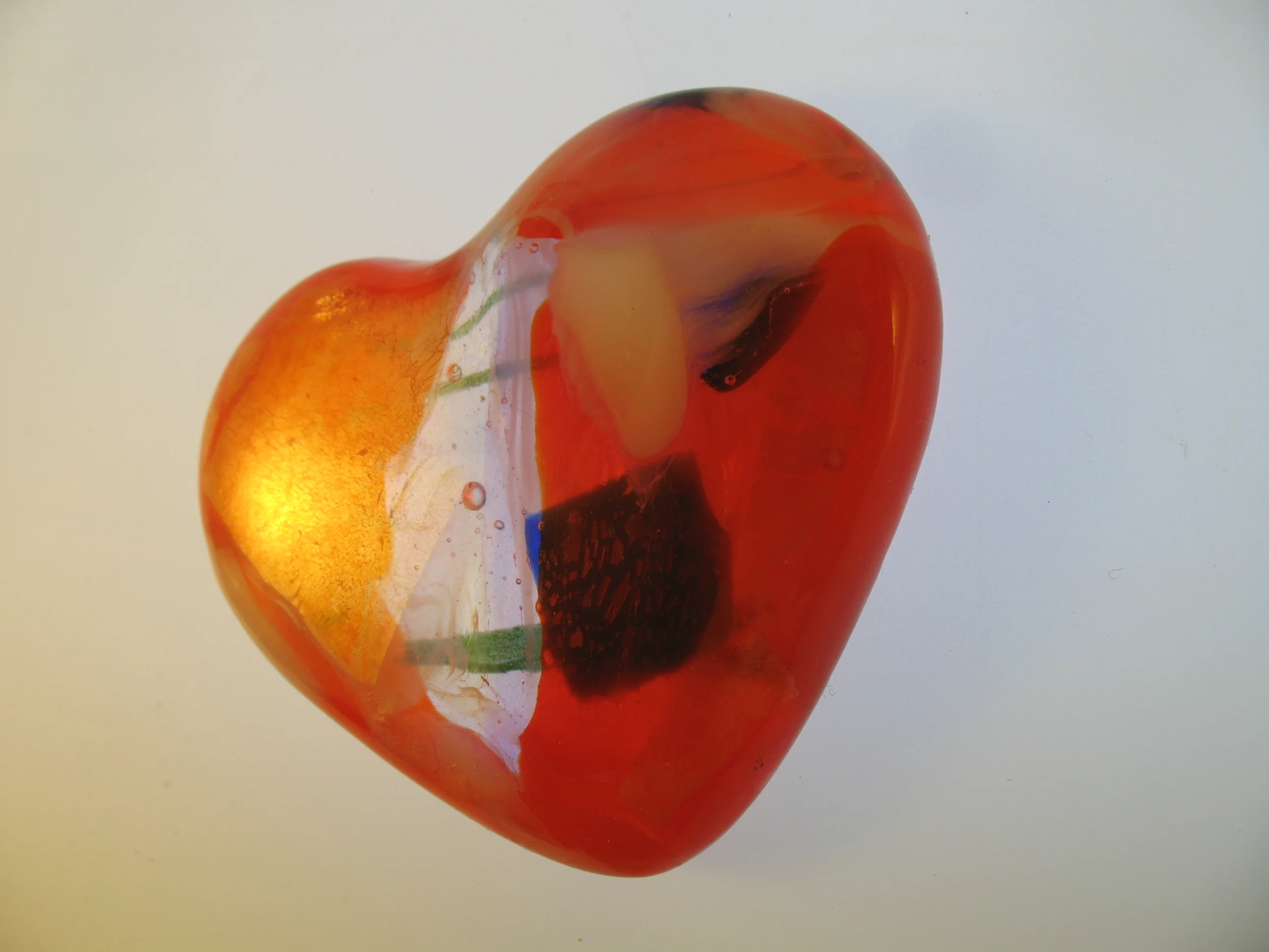 Kilin fired glass hearts. Each one is one of a kind.